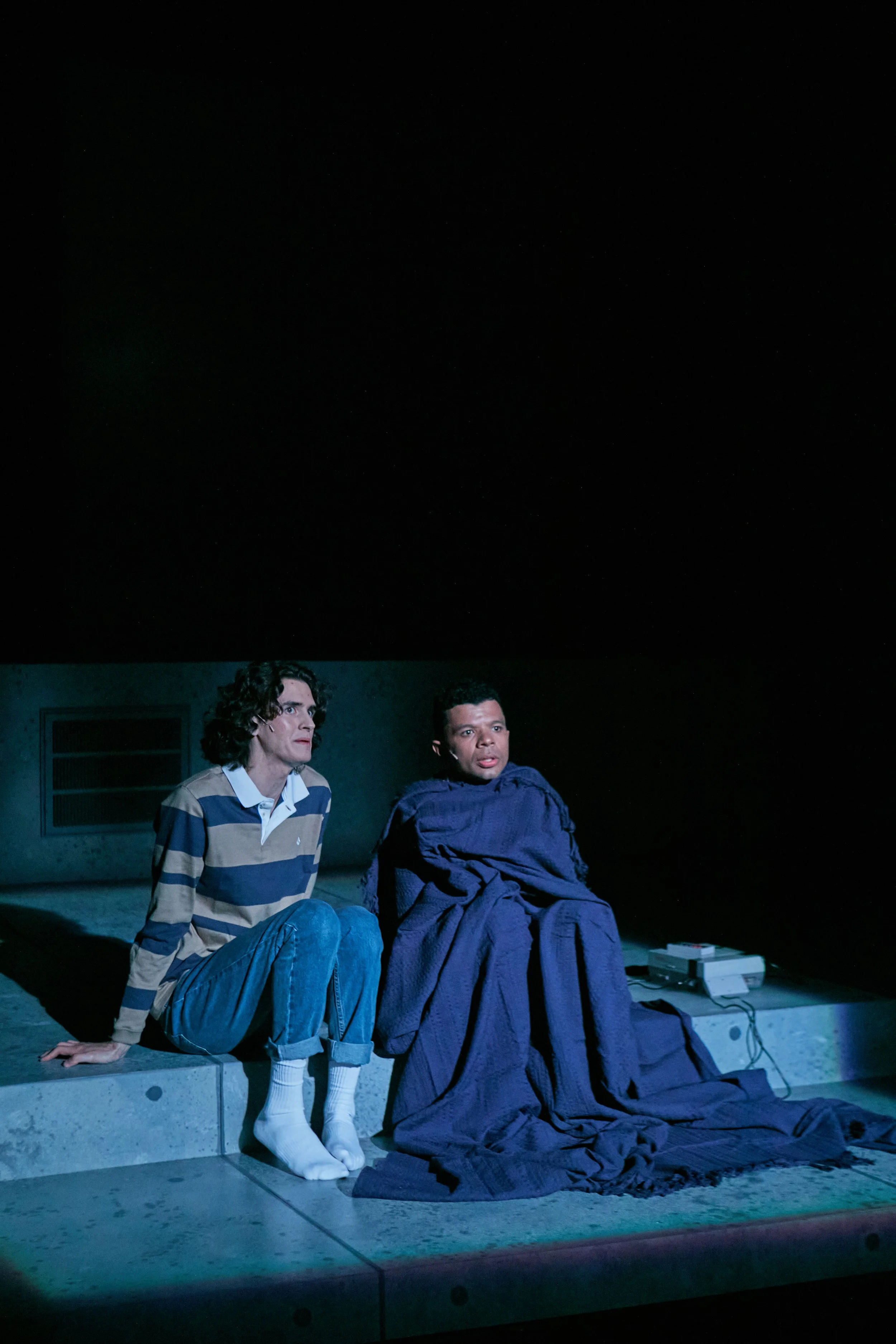 Joshua Hernandez and Xavier Edward King in Defacing Michael Jackson at Miami New Drama. March 2023. Photo by Stian Roenning.