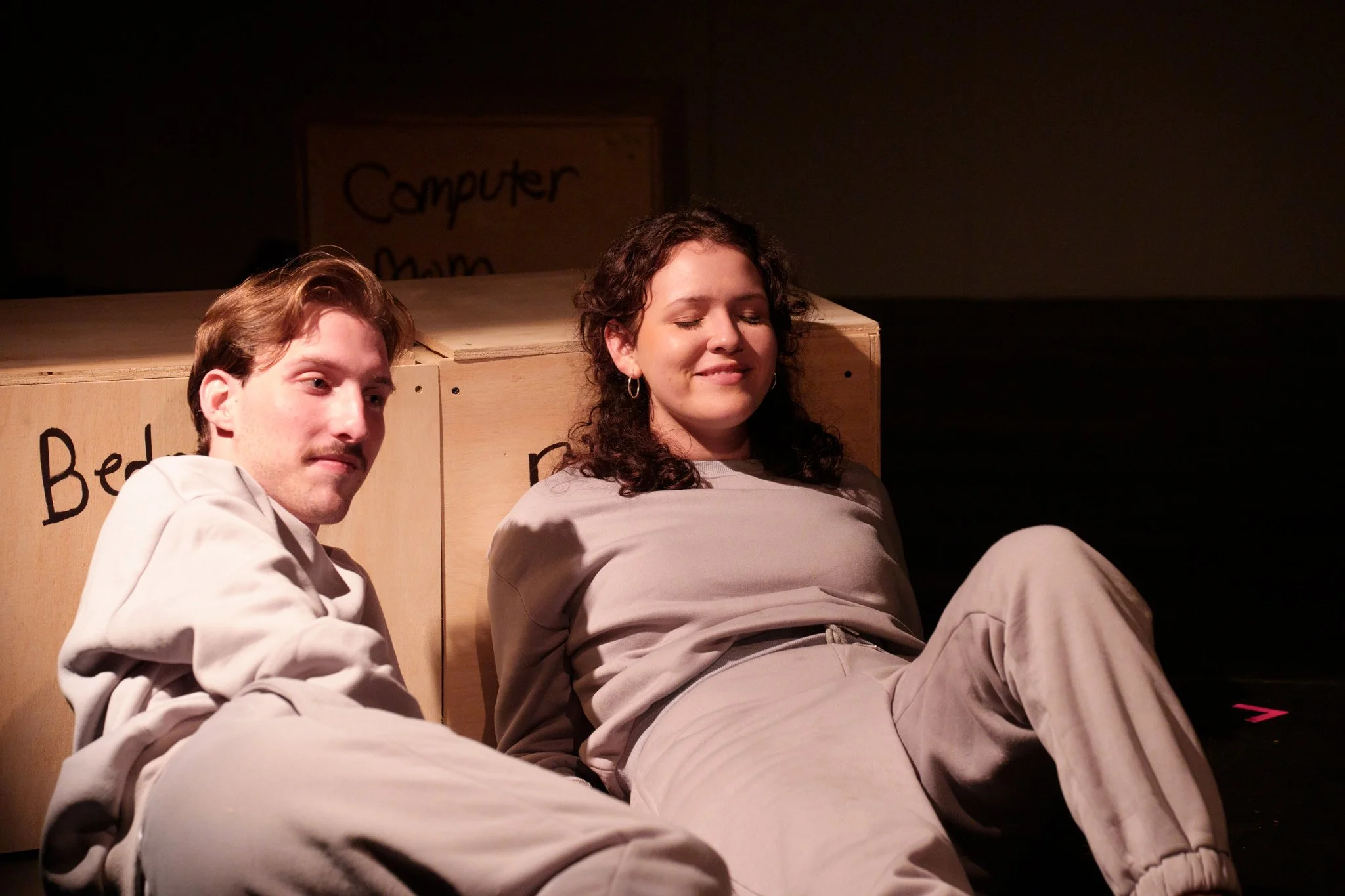 Nathaniel Heustis and Abbie Fricke in Lovesong at Thinking Cap Theatre. Director: Nicole Stodard, PhD. Intimacy Director: Nicole Perry. Oct/Nov 2024. Photo by Tabatha Mudra