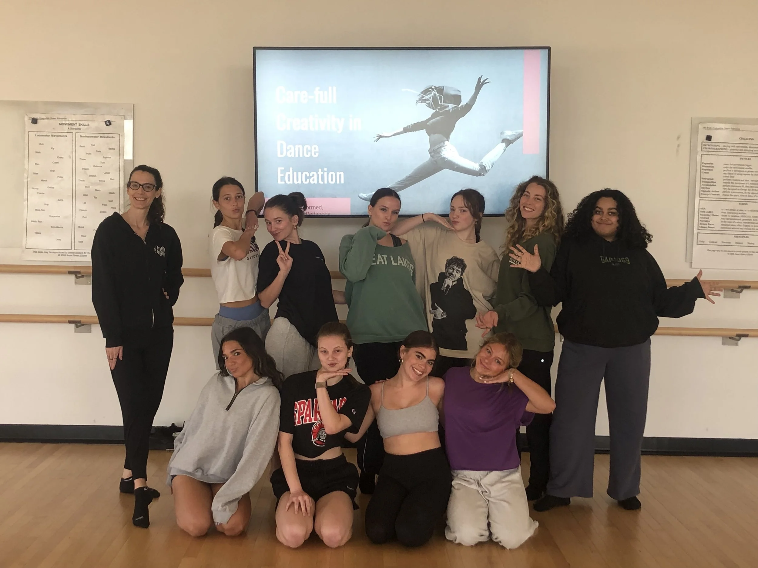 She designed the Care-full Creativity workshops for academic dance programs to demonstrate training and commitment in consent-forward, trauma-informed, psychologically safe dance pedagogy. The student version of the workshop can fulfill the Lab 1 requirement for Intimacy Professionals Education Collective, a SAG-AFTRA accredited Intimacy Coordinator training program, while the faculty version can complete one or modules of the Intimacy Educator: Dance/Movement track!